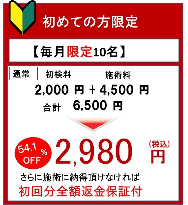 この施術なら老若男女問わず安心して施術を受けれると思いました。また自分の悩みに対してセルフケアの仕方を丁寧に教えてもらえてとても良かったです。